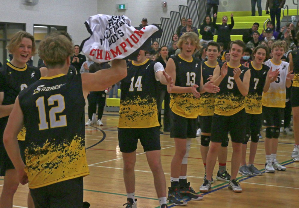 It took until nearly 11:30 p.m., but the Steinbach Regional Secondary School varsity boys team was able to equal their counterparts, winning a South Central Athletic Conference (SCAC) banner inside their home gym.